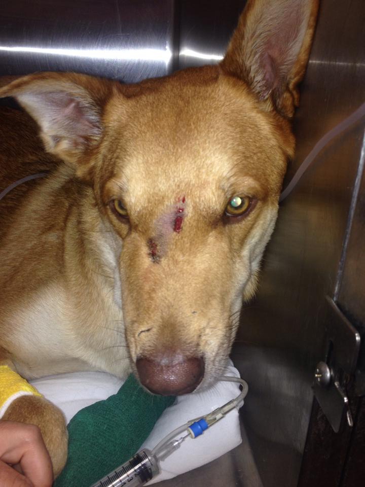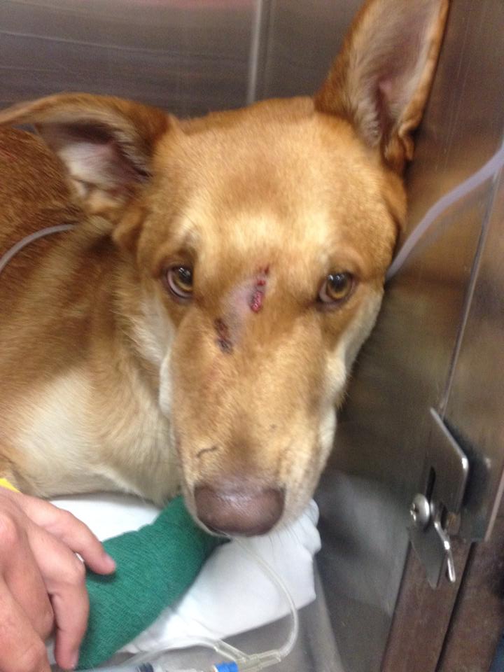 “The ER found more snake bites on him but they think they were dry bites – where the snake didn’t inject venom when it struck. He was even more lucky because the snake struck the bony part of his muzzle which meant the fangs glanced off instead of really sinking in.”
