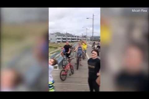He said he was walking with friends on the boardwalk when they spotted the raccoon and immediatley strted recording.