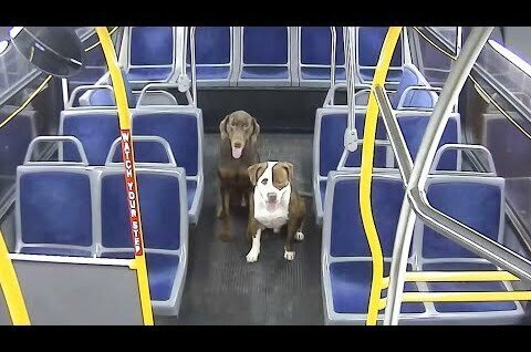The dogs seemed friendly enough and jumped on the bus while wagging their tails. The thoughtful woman called authorities who sent a police officer to help the dogs out. “I got them on the bus because I thought they were going to get hit,” she’s heard telling a dispatcher.