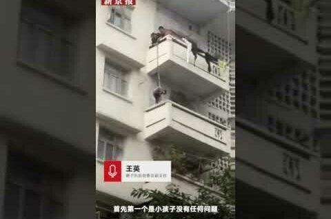 Passers by filmed this little clip that shows the Chinese grandma dangling her 7-year-old grandson named Hao Hao on a rope from the 5th floor balcony in a risky attempt to rescue her beloved cat that was stuck on a ledge one level below their apartment. Footage shows how the boy balances on the tiny ledge, supported by the rope held by his grandma and puts the cat in the bag (no pun intended?) and then both of them get pulled back up to safety by the same grandma, assisted by the boy’s uncle.