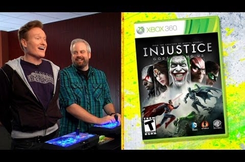 Conan O’Brien played and reviewed DC Comics fighting game Injustice: Gods Among Us with Aaron Bleyaert for another “Clueless Gamer” segment on Conan. In previous episodes, he’s reviewed Skyrim, Minecraft, Halo 4, Resident Evil, Just Dance 4, Hitman: Absolution, and he even perved out on Lara Croft in Tomb Raider.