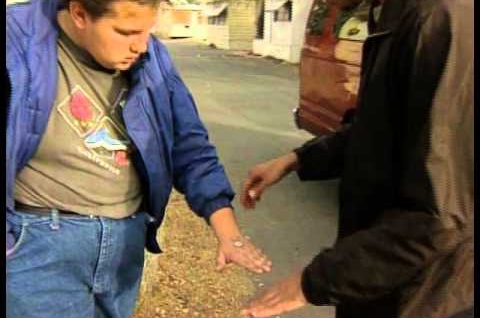 Illusionist David Blaine makes a coin disappear off a young man’s hand. I don’t think the reaction he gets is quite what he was going for…