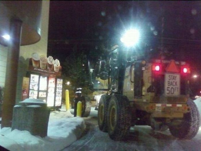 People drive very interesting things... Here is a great compilation of funny drive-thru customers:))