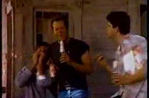 The director had the actors use blanks in his movies to amplify the sound effects and to create a real live setting. Unfortunately, during this table top scene, Willis lost 2/3 of his hearing in his left ear.