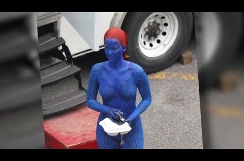 Jennifer Lawrence was spotted on the set of ‘X-Men: Days of Future Past’ in full mutant mode, and she’s never looked better (or bluer).